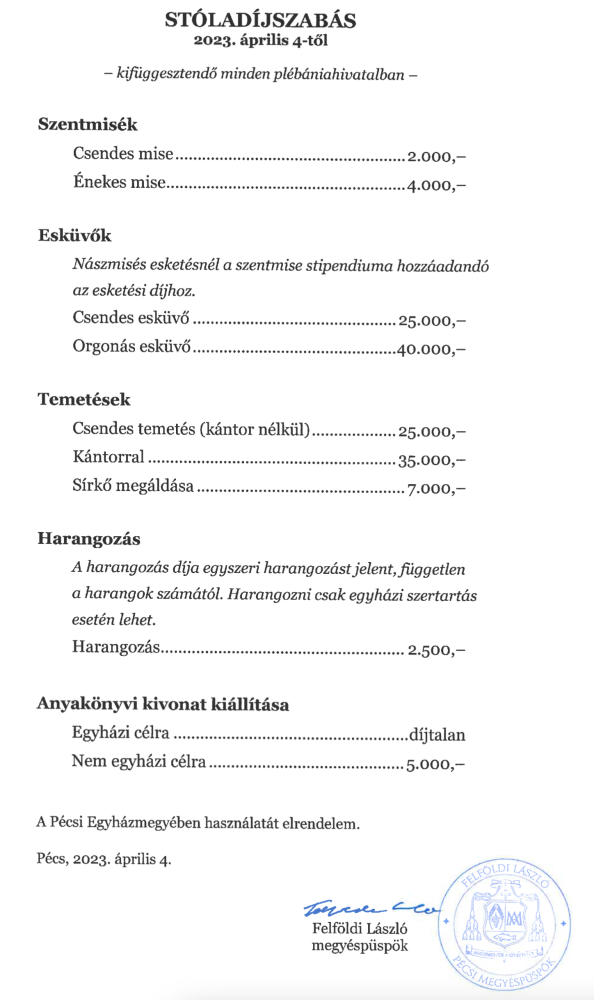 • Egyházközségi hozzájárulás